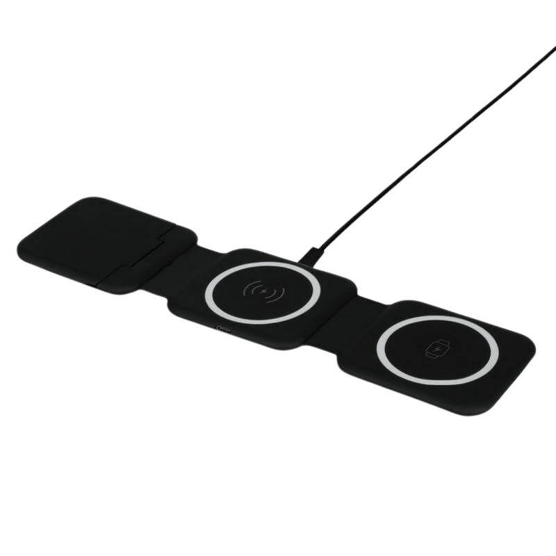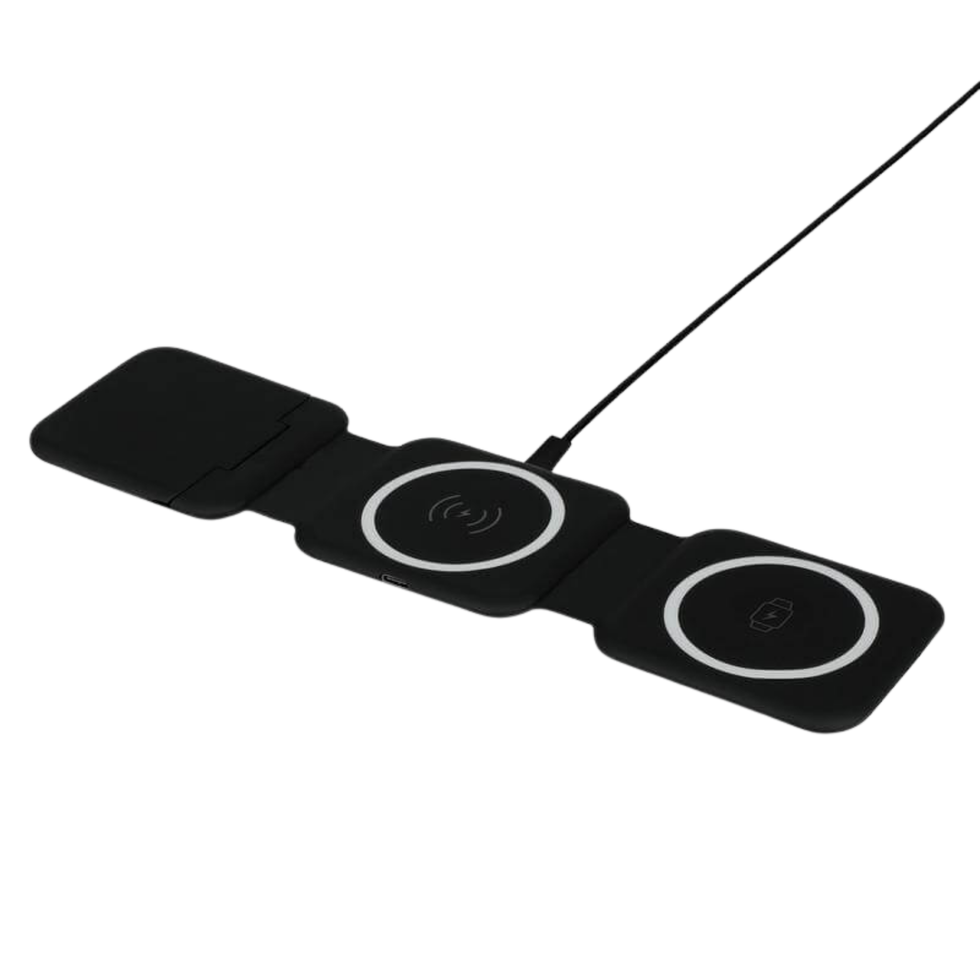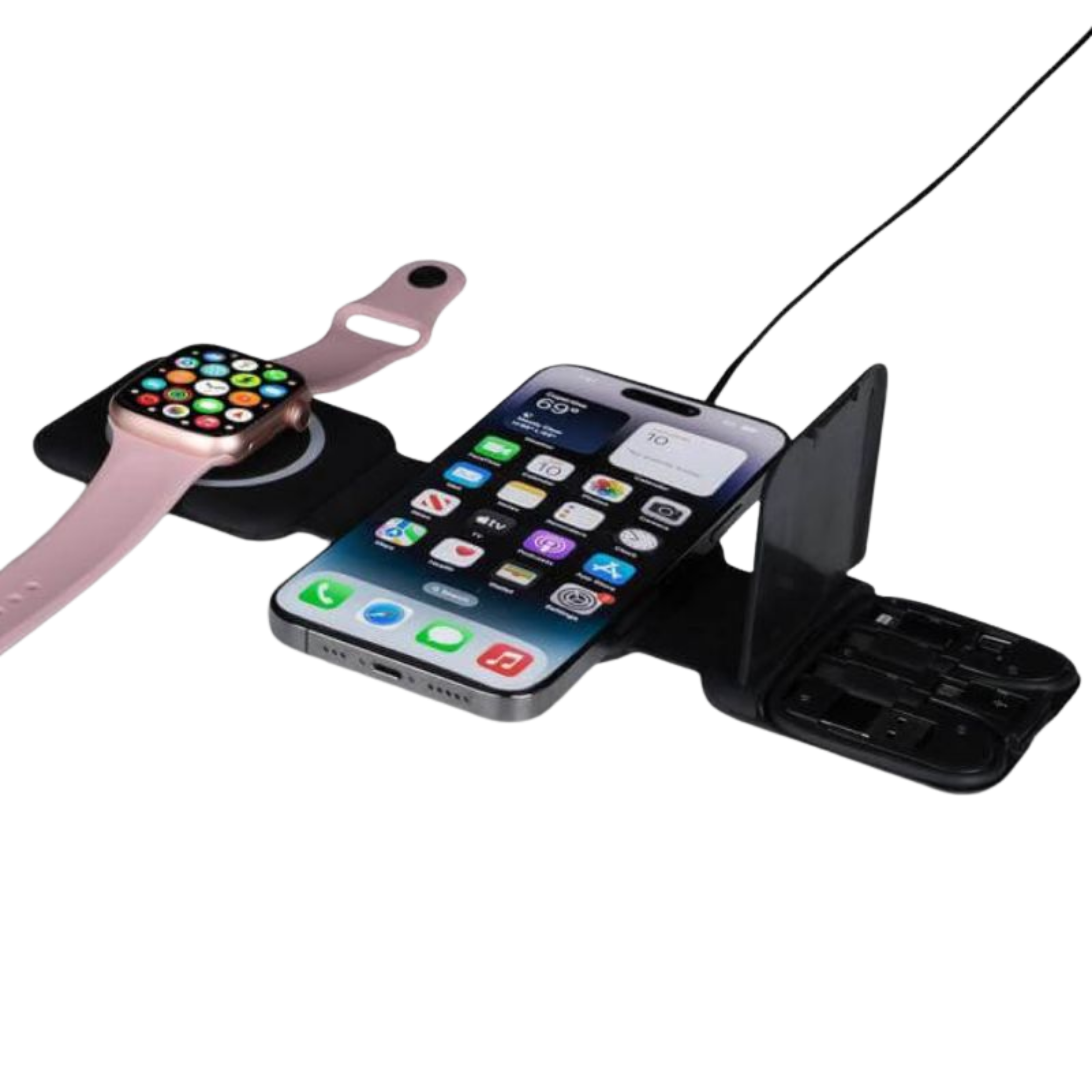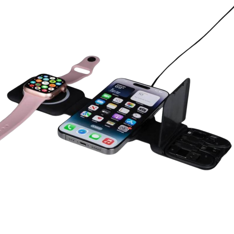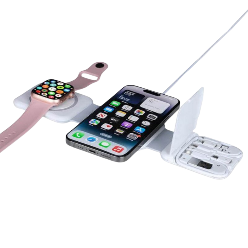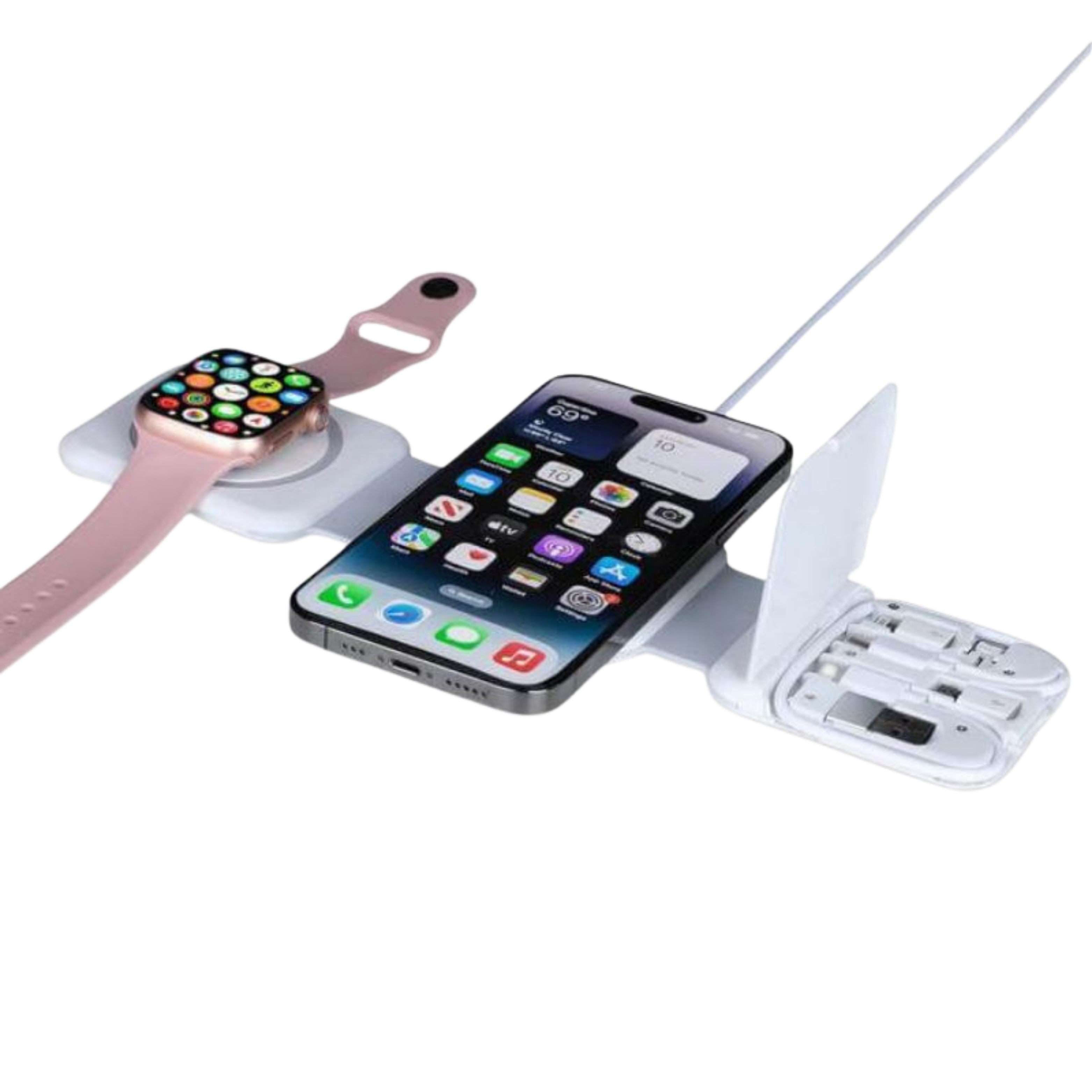 This 2-in-1 Wireless Charger Multi-Cable Set is perfect for corporate gifting and employee swag. Combining wireless charging and a multi-cable set in one, it offers a versatile and eco-friendly solution to charge various devices in a sleek, compact design.