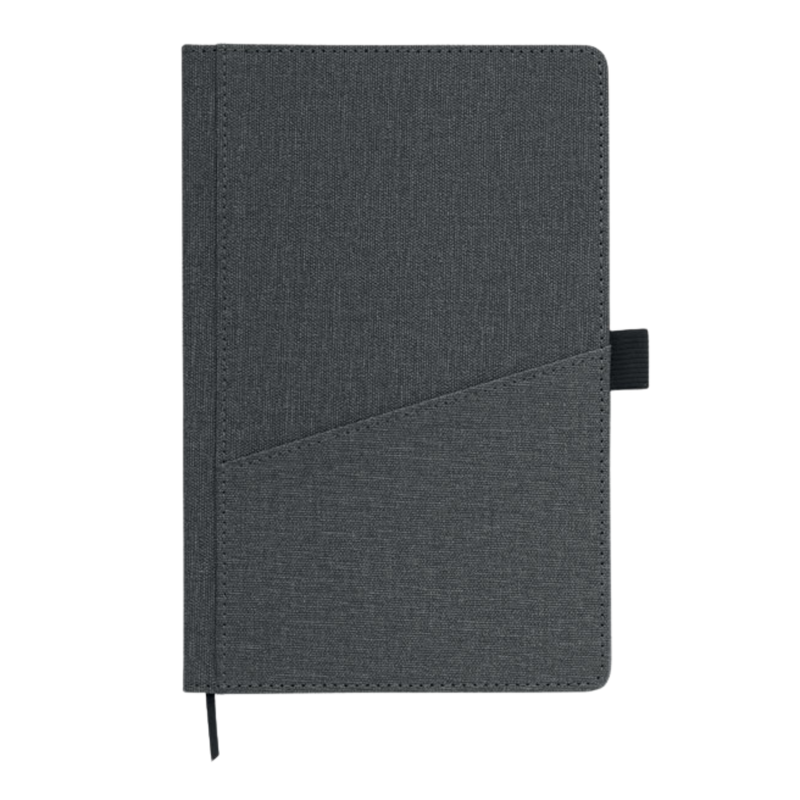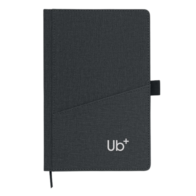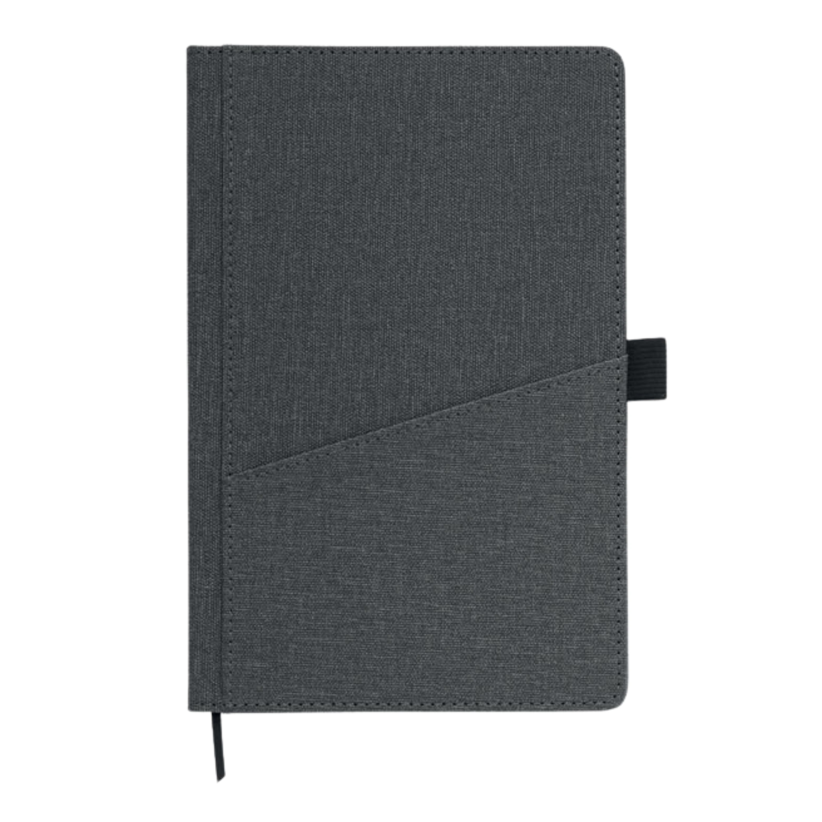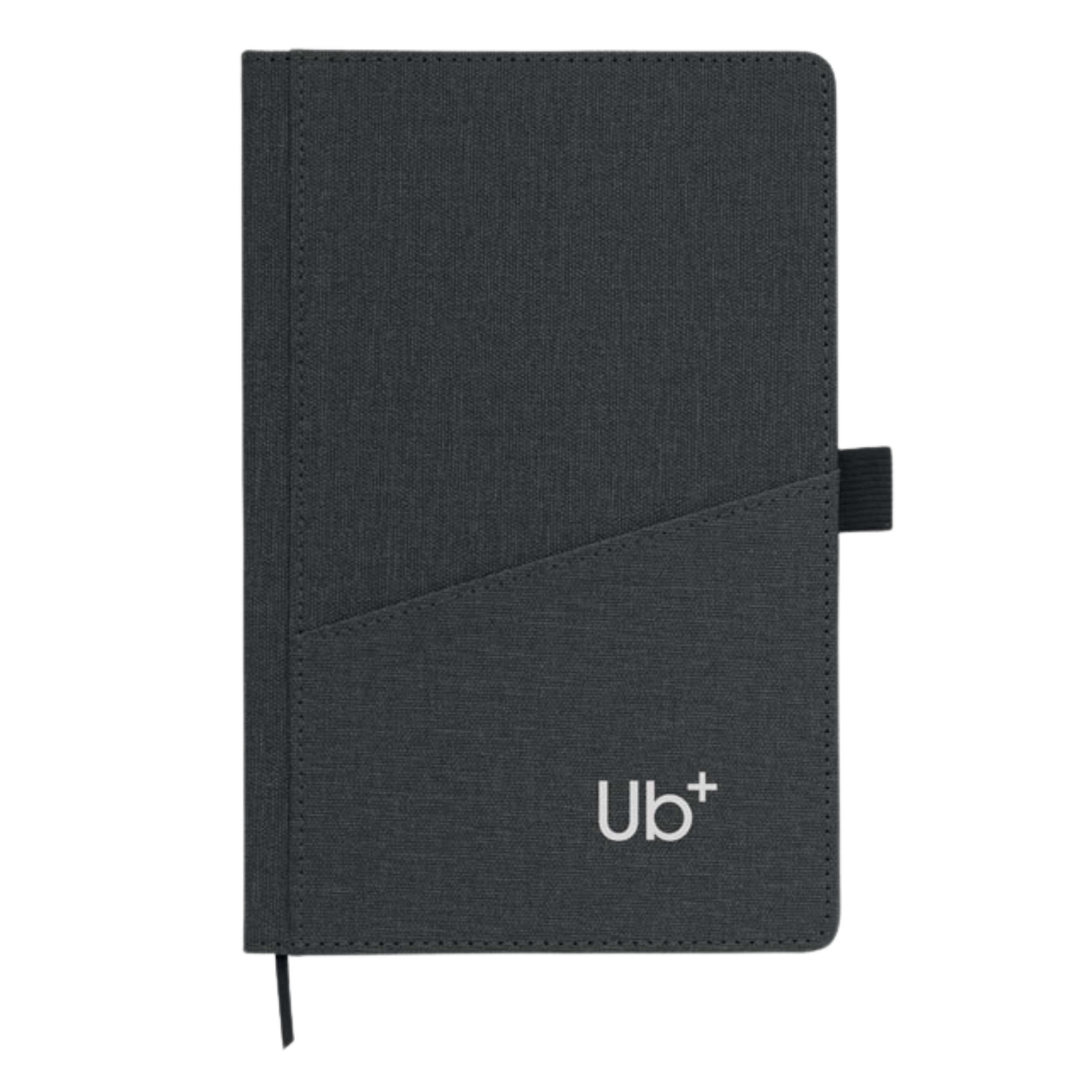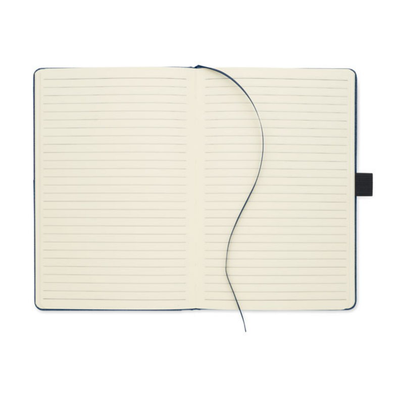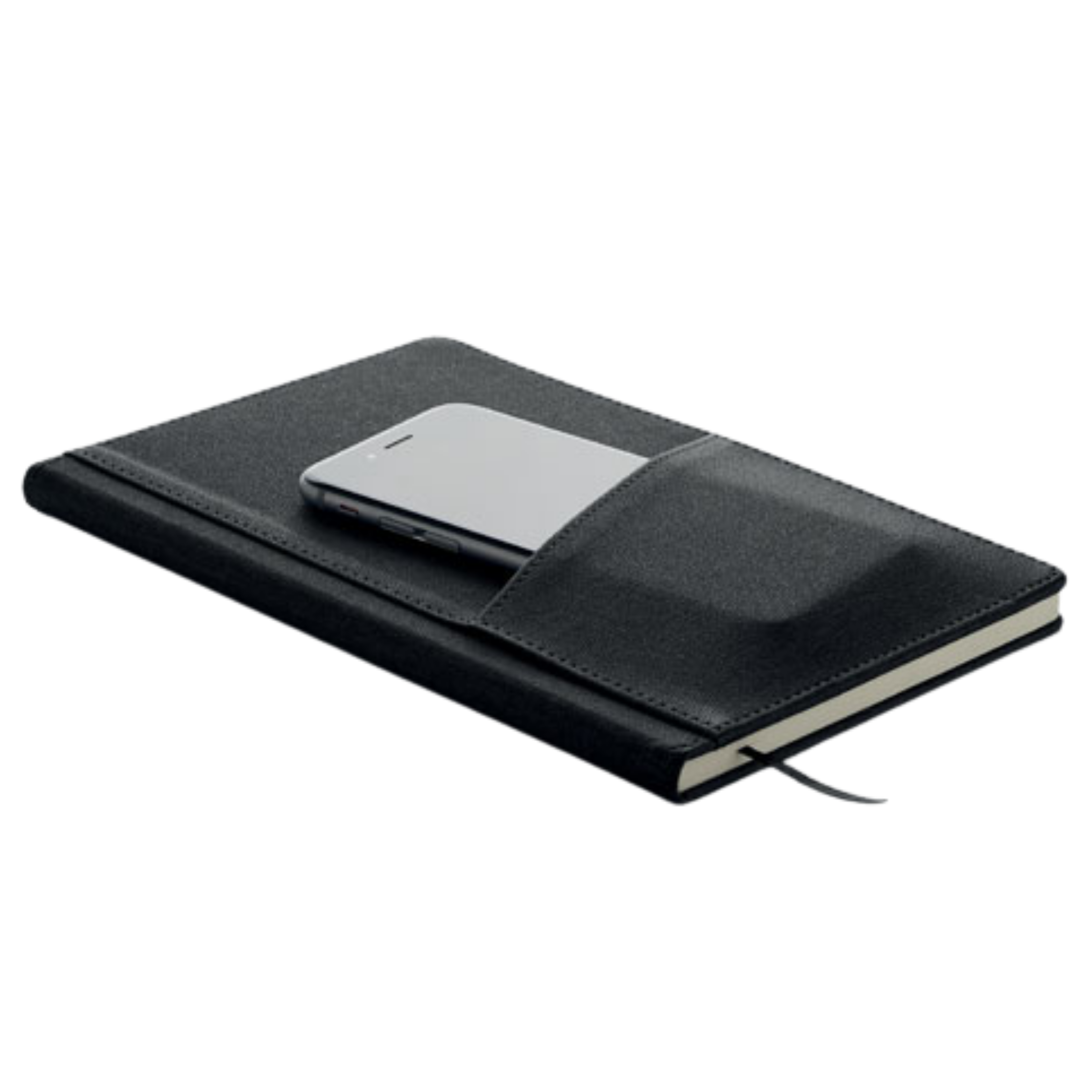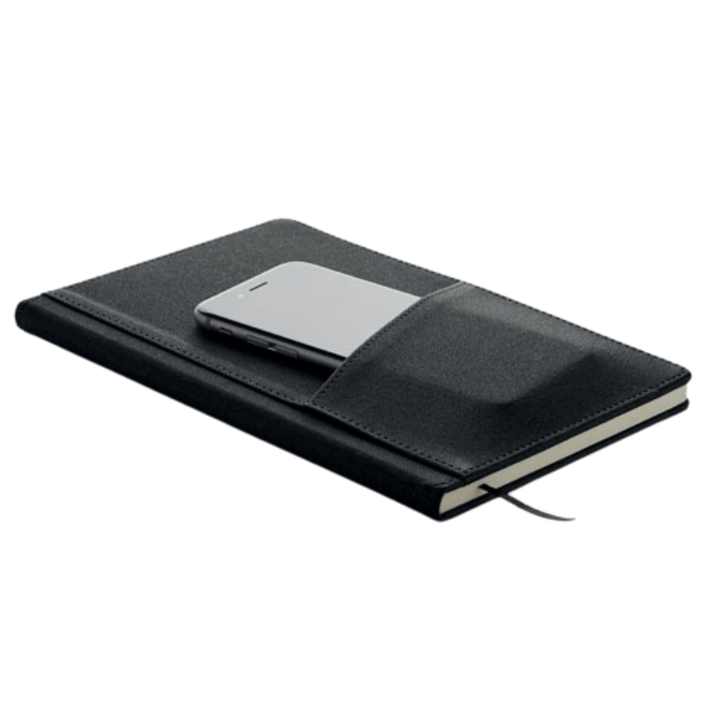 This A5 notebook with a PU hard cover features a unique front phone pocket. The notebook includes 160 recycled paper-lined pages and a matching ribbon bookmark, making it a great corporate gift for employees and clients who appreciate sustainability and practicality in one.