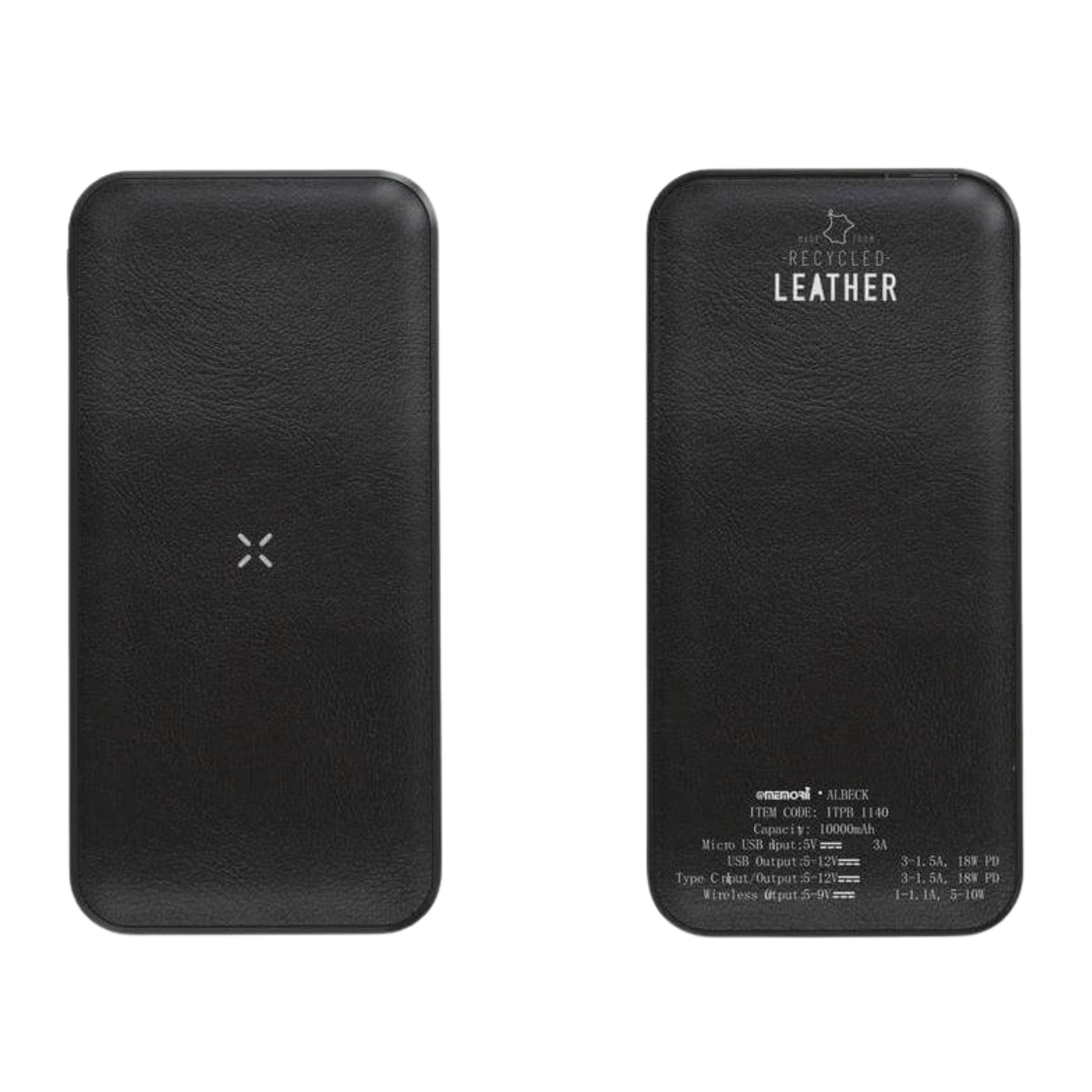 Recycled Leather 10,000 mAh Wireless Powerbank